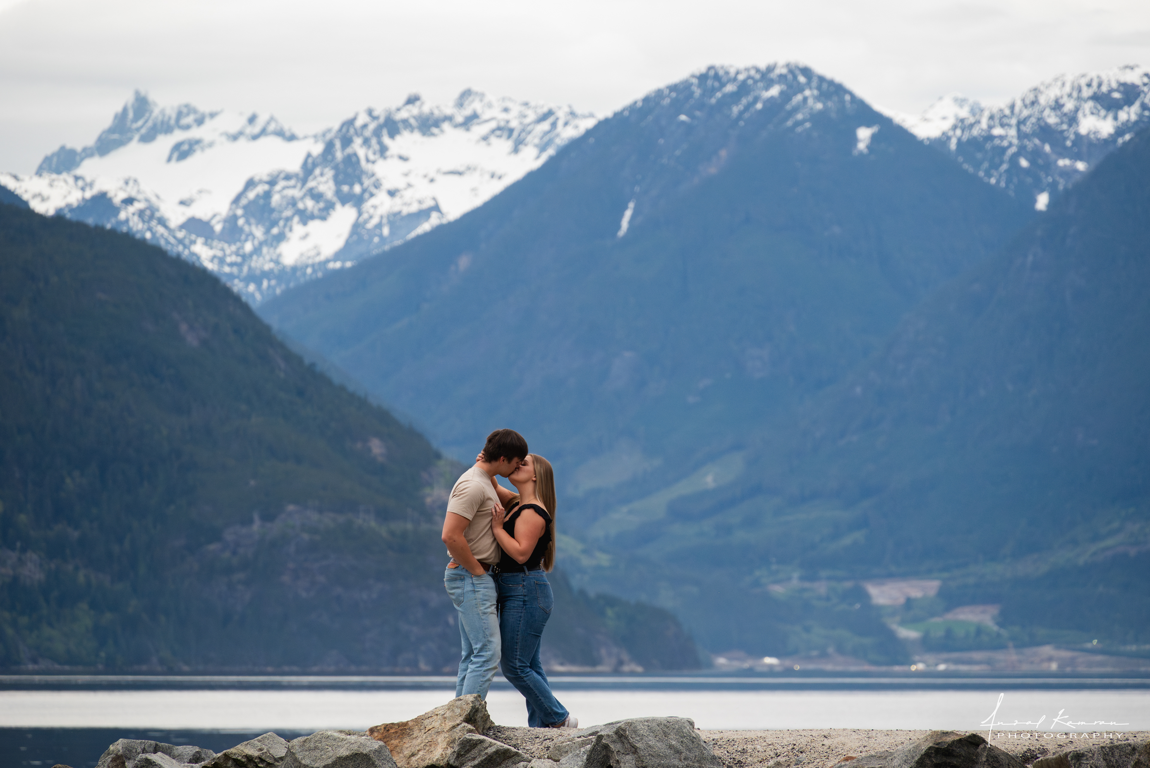"I want mountain backgrounds," said Paige. Porteau Cove, near Squamish, is a breathtaking canvas for capturing the essence of romance against a majestic mountain backdrop. I had the pleasure of photographing Paige and Colby, a pair whose chemistry mirrored the beauty of their surroundings. Their genuine affection, coupled with Porteau Cove's natural splendor, resulted in images that not only captured their love but also celebrated the stunning landscape that served as their backdrop.